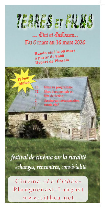 La 17ème édition de « Terres et films d’ici et d’ailleurs », festival de cinéma sur la ruralité va se dérouler du 6 mars au 16 mars. Toutes les séances sont à 4 €.