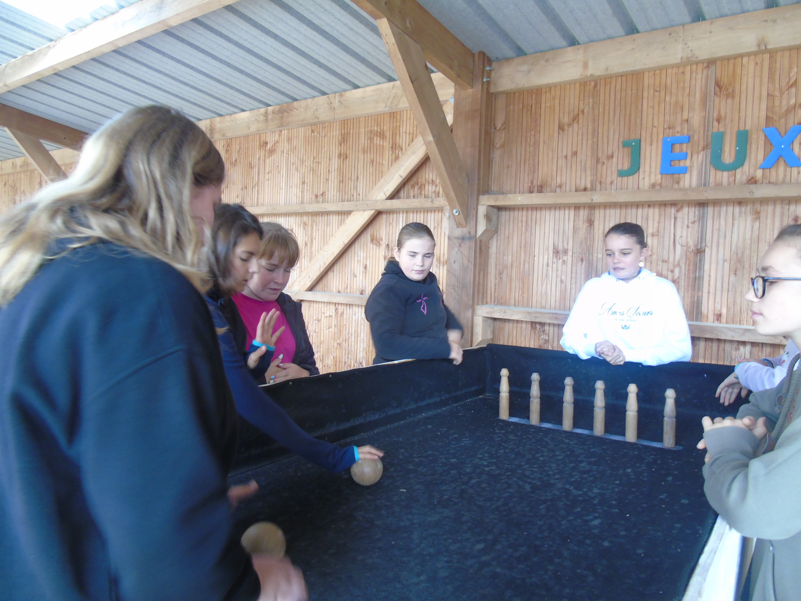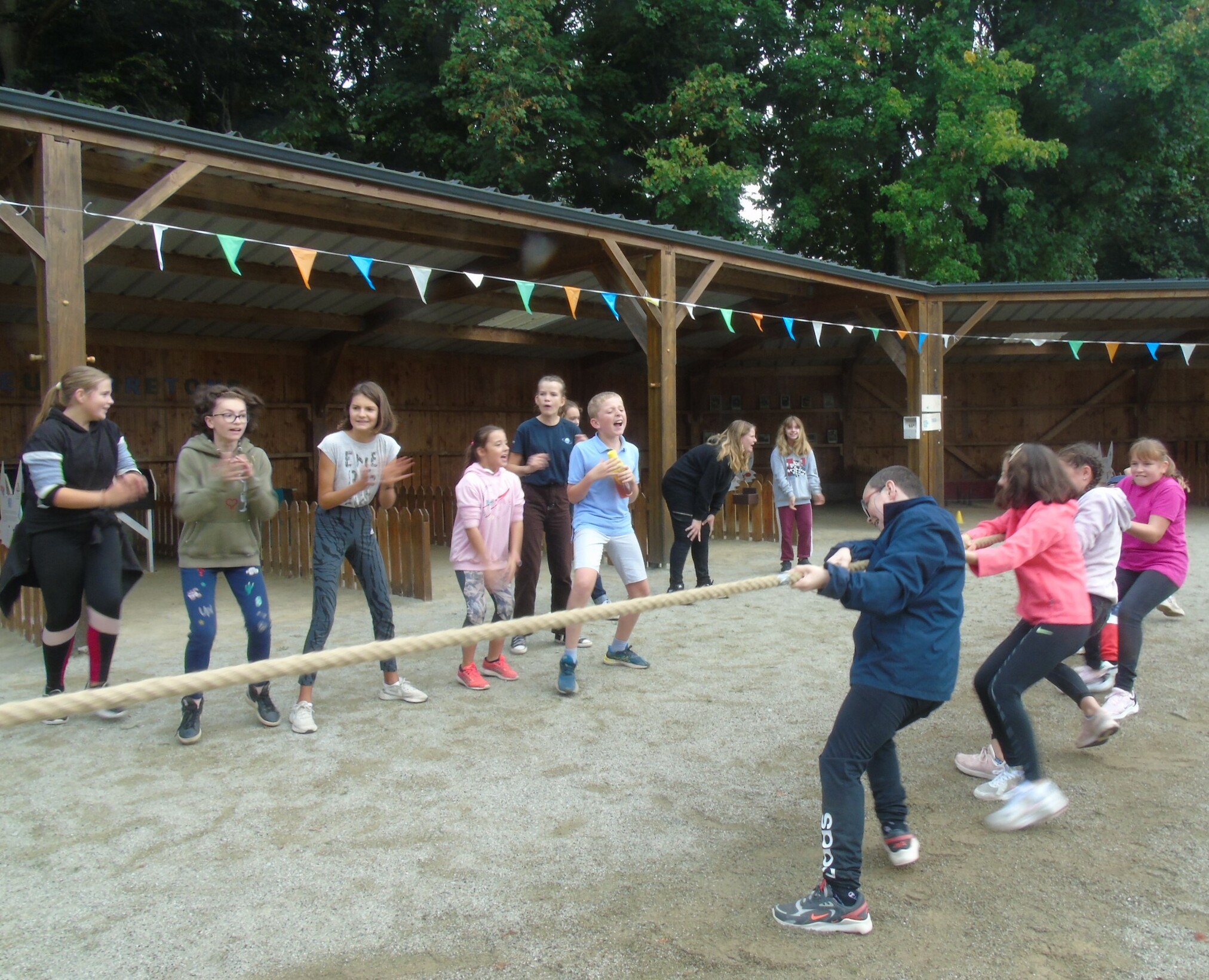 Nous avons participé à des Jeux bretons comme le palet, les boules et, pour terminer, un tir à la corde où notre classe a gagné.