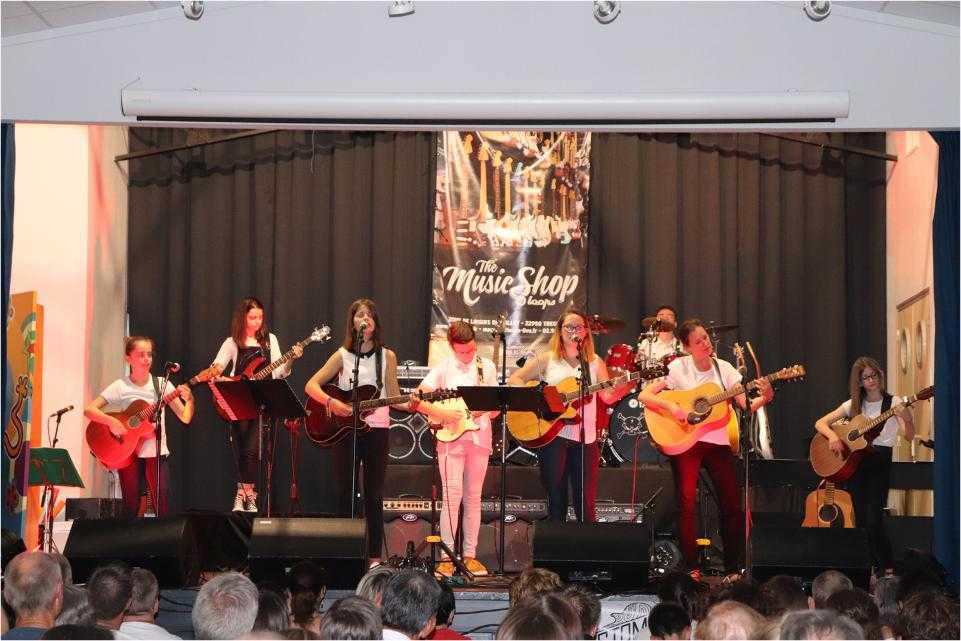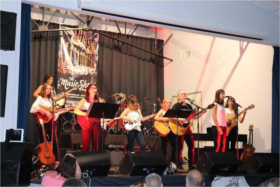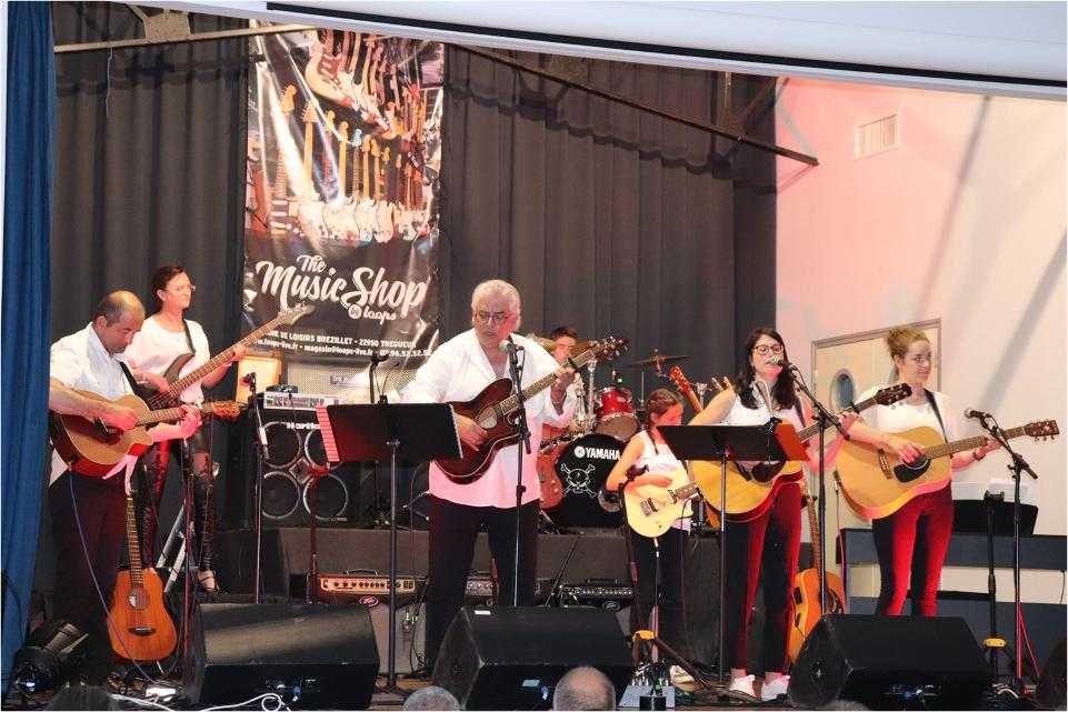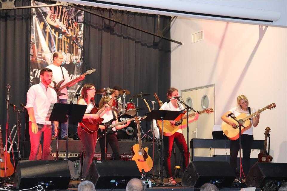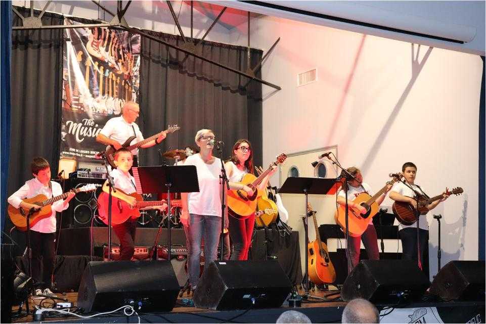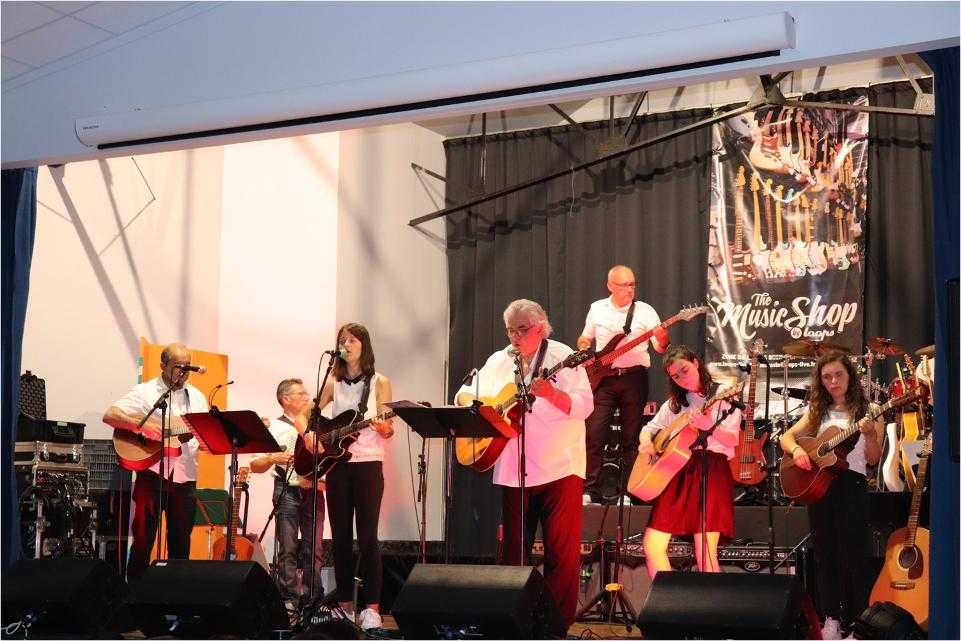 Par petits groupes, près de 70 musiciens ont joué de la guitare, de la batterie et chanté un répertoire riche et varié devant un public conquis et ravi.