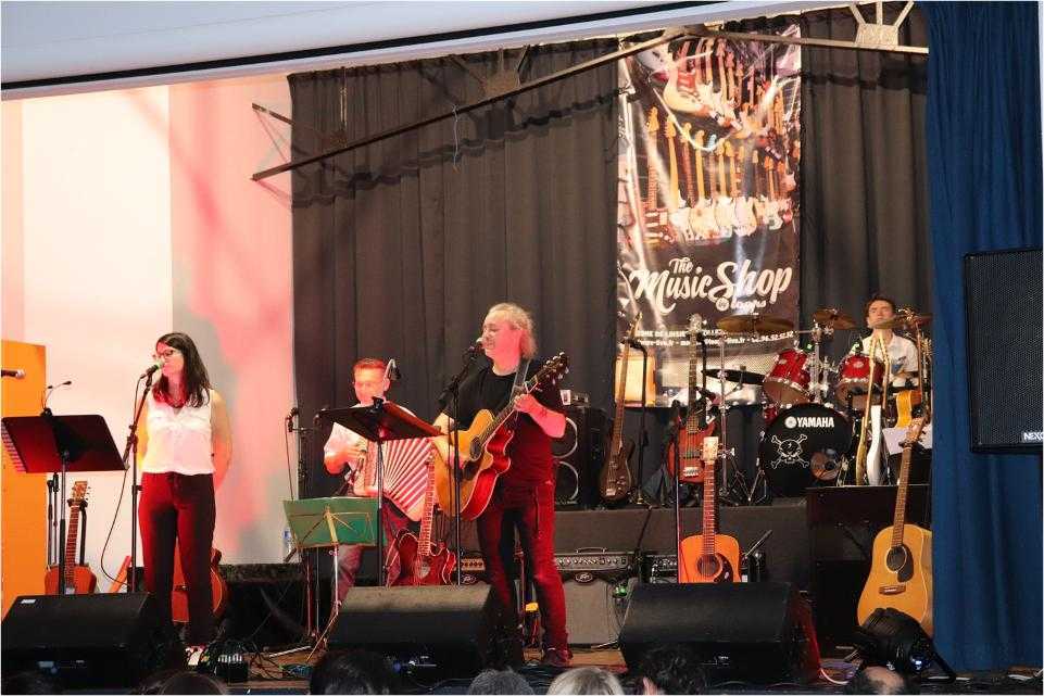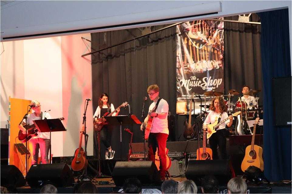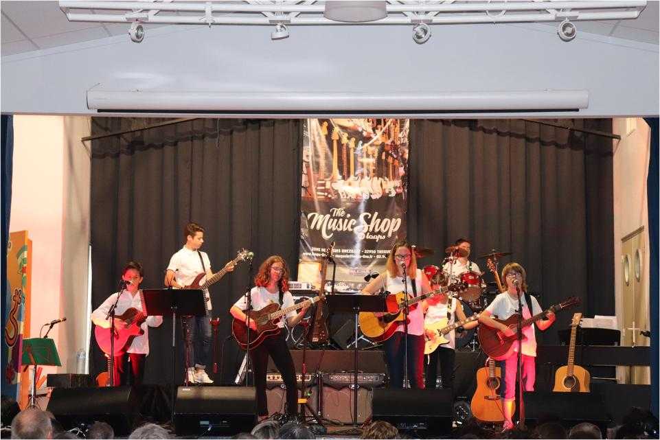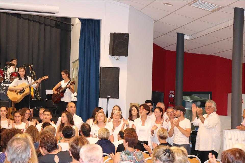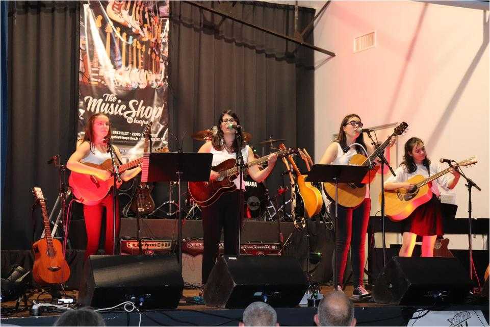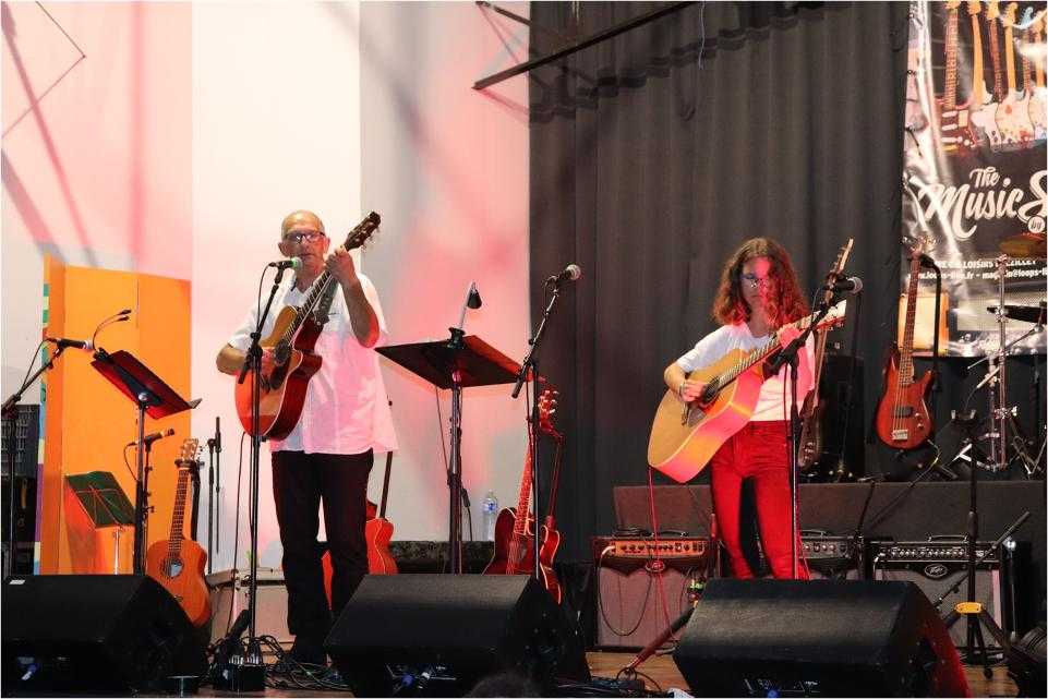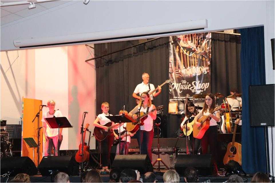 Par petits groupes, près de 70 musiciens ont joué de la guitare, de la batterie et chanté un répertoire riche et varié devant un public conquis et ravi.