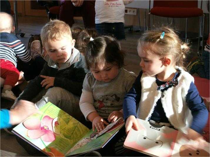 Jeudi 8 novembre, Maryse responsable de la bibliothèque, Annie stagiaire et Francine bénévole, ont reçu les tout-petits pour une séance bébés lecteurs.